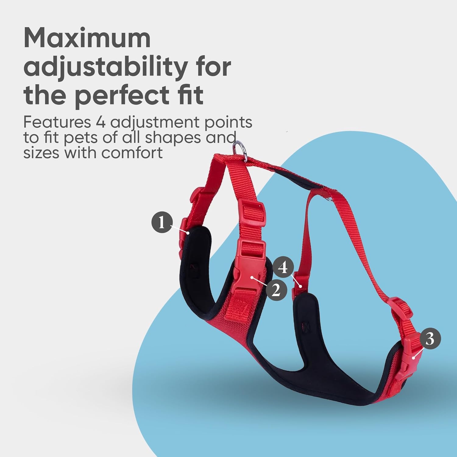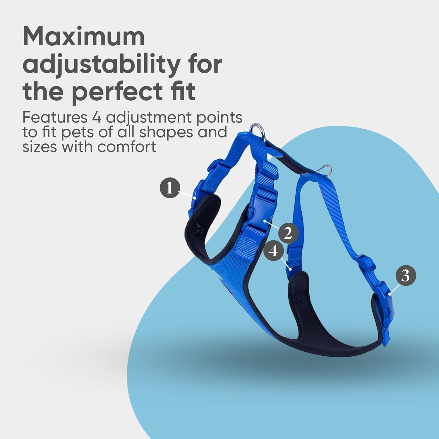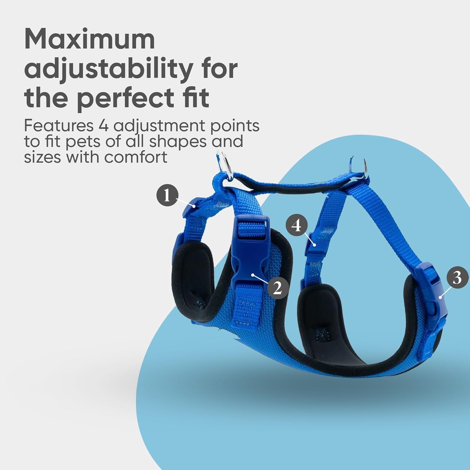 - ✔️𝐄𝐚𝐬𝐲 𝐎𝐧 & 𝐎𝐟𝐟: Equipped with quick-snap buckles, this dog harness is easy to put on and take off. Fully adjustable with four buckles, it provides a custom fit for any breed, from dogs to cats, making it ideal for those looking for both convenience and reliability.