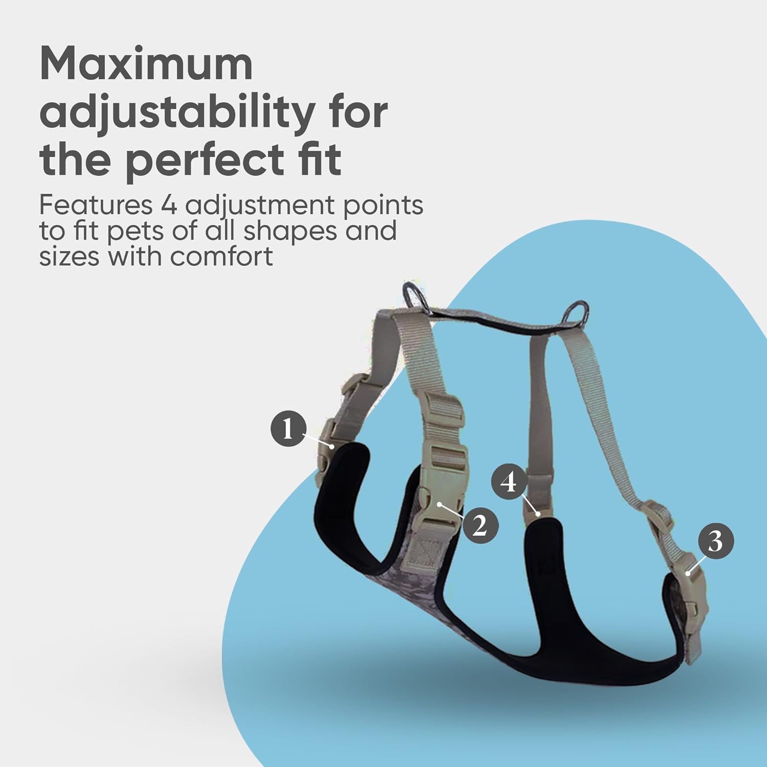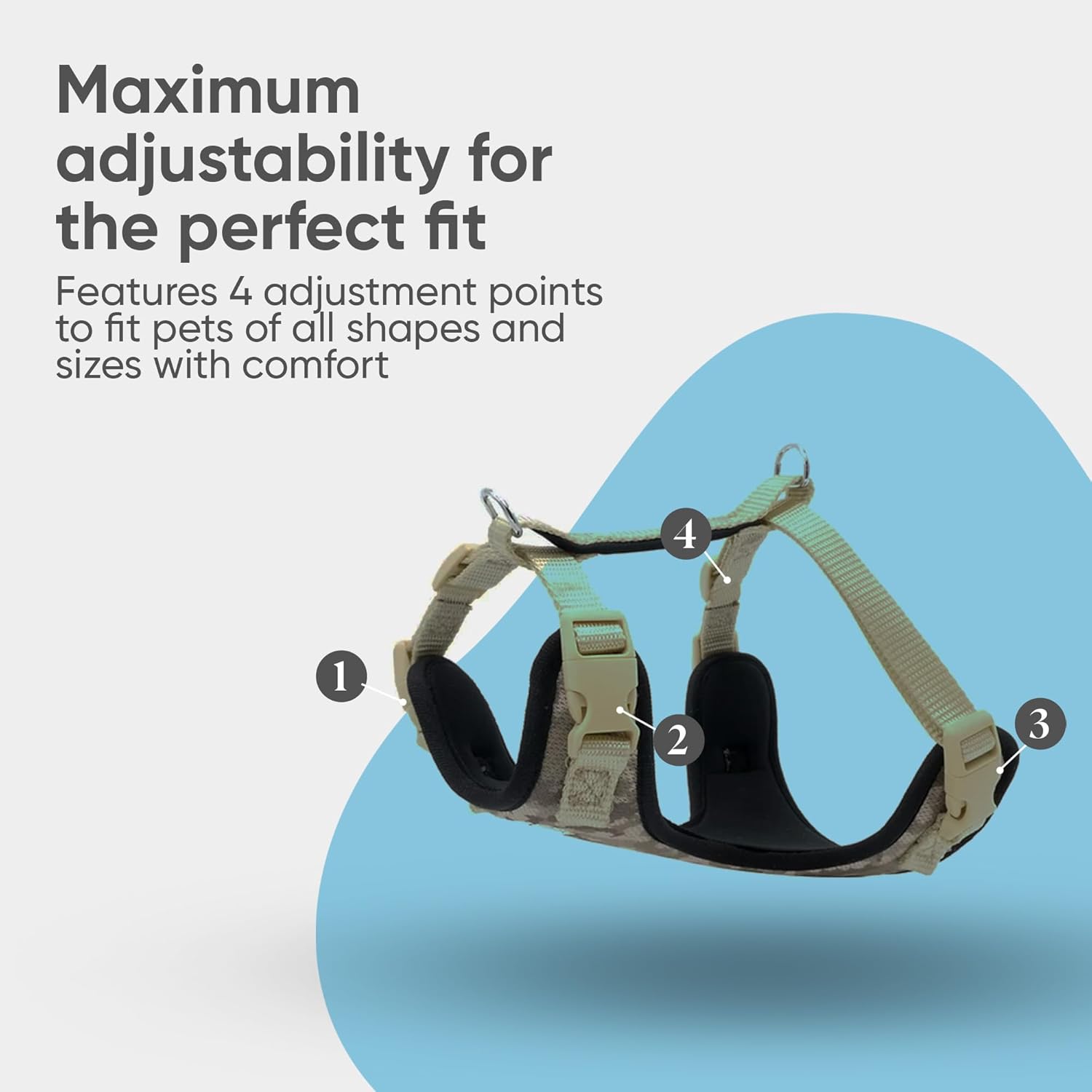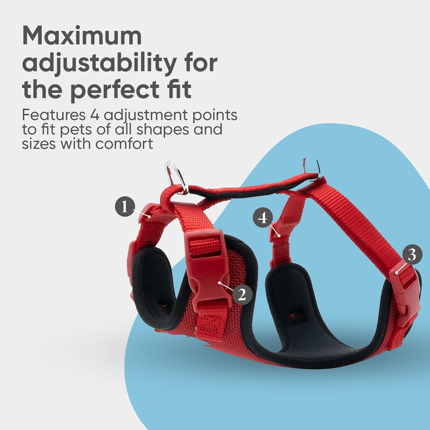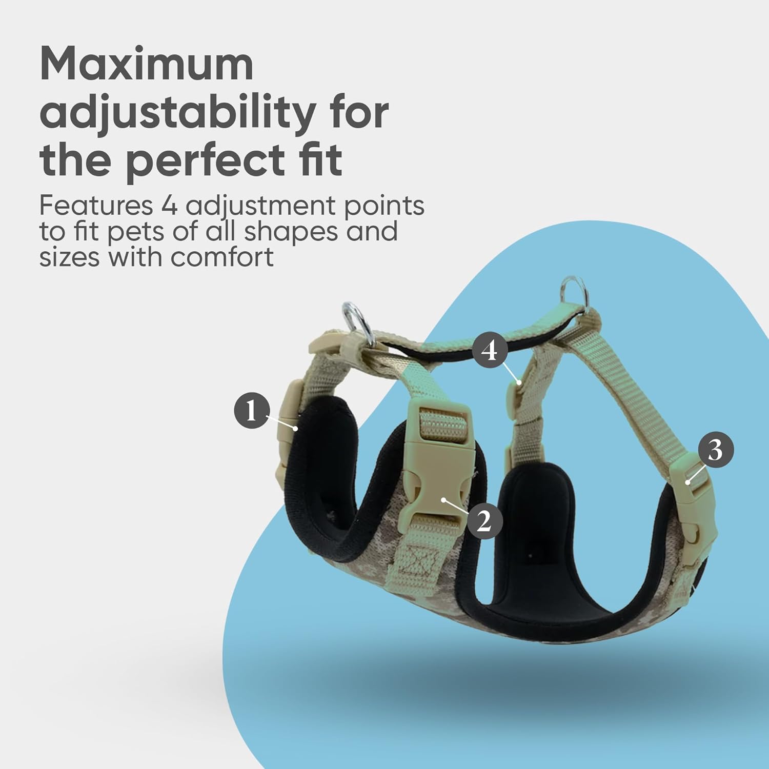 - ✔️𝐄𝐚𝐬𝐲 𝐎𝐧 & 𝐎𝐟𝐟: Equipped with quick-snap buckles, this dog harness is easy to put on and take off. Fully adjustable with four buckles, it provides a custom fit for any breed, from dogs to cats, making it ideal for those looking for both convenience and reliability.