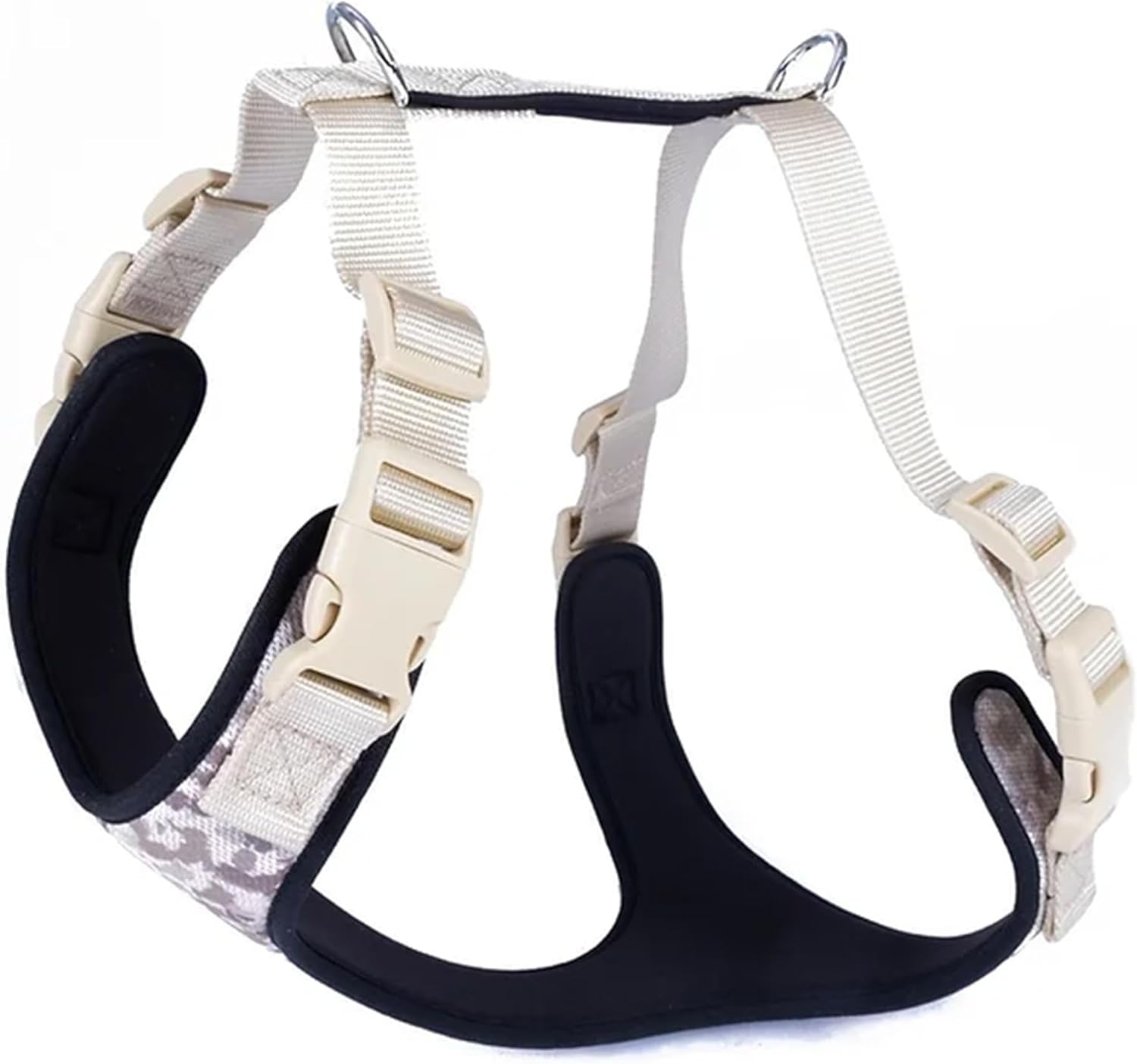 - ✔️𝐍𝐨 𝐏𝐮𝐥𝐥 𝐂𝐨𝐧𝐭𝐫𝐨𝐥: This harness features two metal leash rings for versatile use. The back ring is ideal for casual walks, while the chest ring helps discourage pulling during training. The built-in handle offers extra control when guiding your pet in difficult situations.