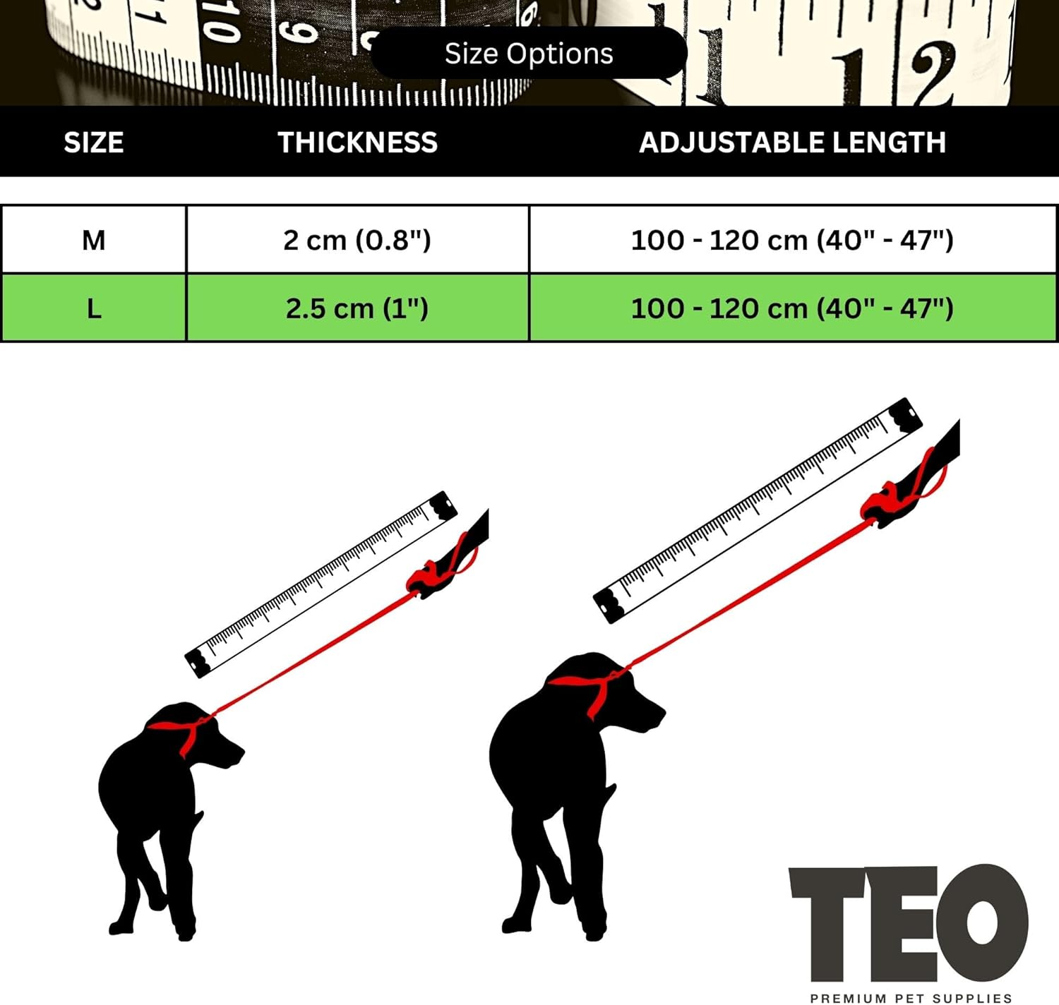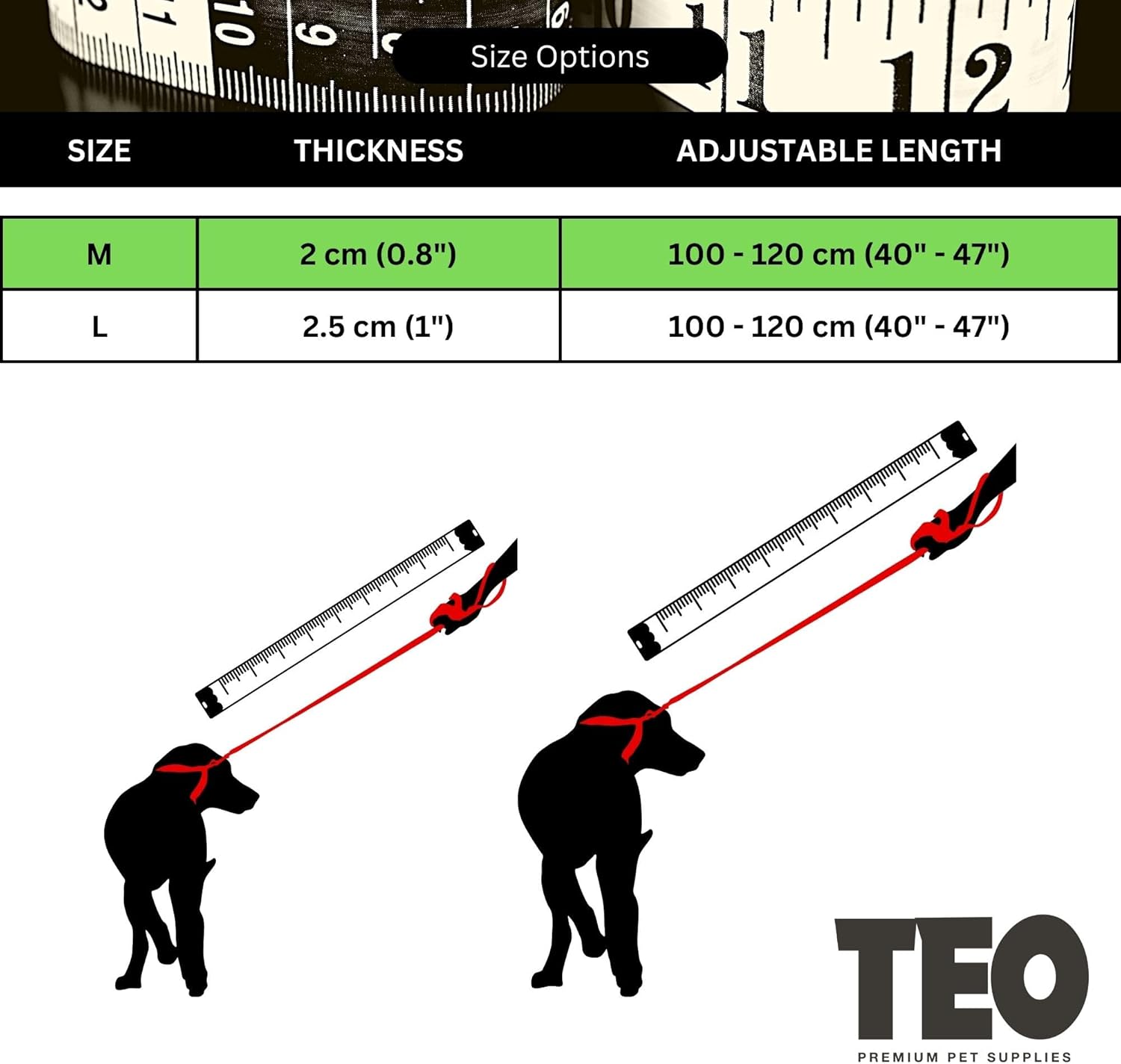 Leather Dog Leash – Adjustable & Durable, Black (M)