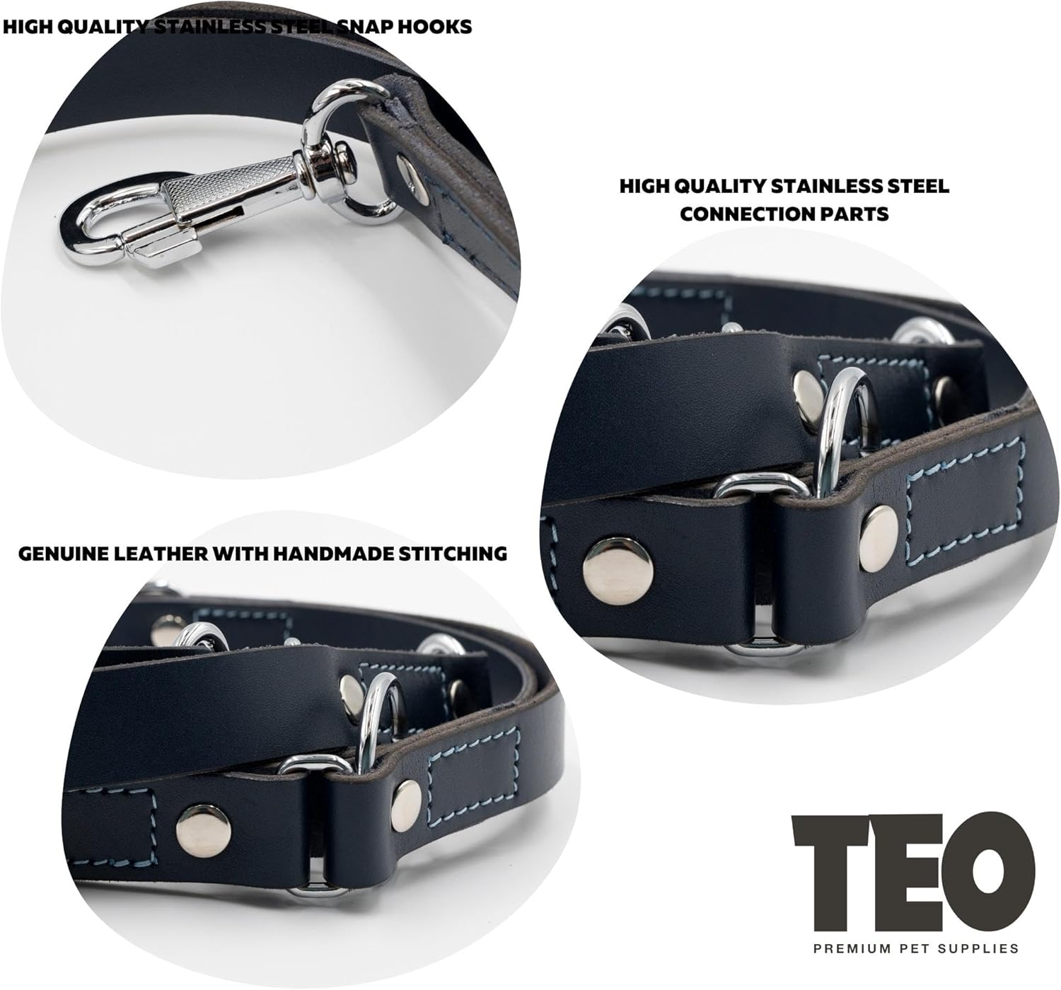 As dog lovers ourselves, we designed this collar with you and your dog's comfort in mind. Our dog leashes are suited for all dog collars. Leather dog leashes are made of soft yet durable genuine leather and are equipped with heavy-duty metal snap hooks and connection parts. These leather leashes for dogs are handcrafted with great attention to detail.